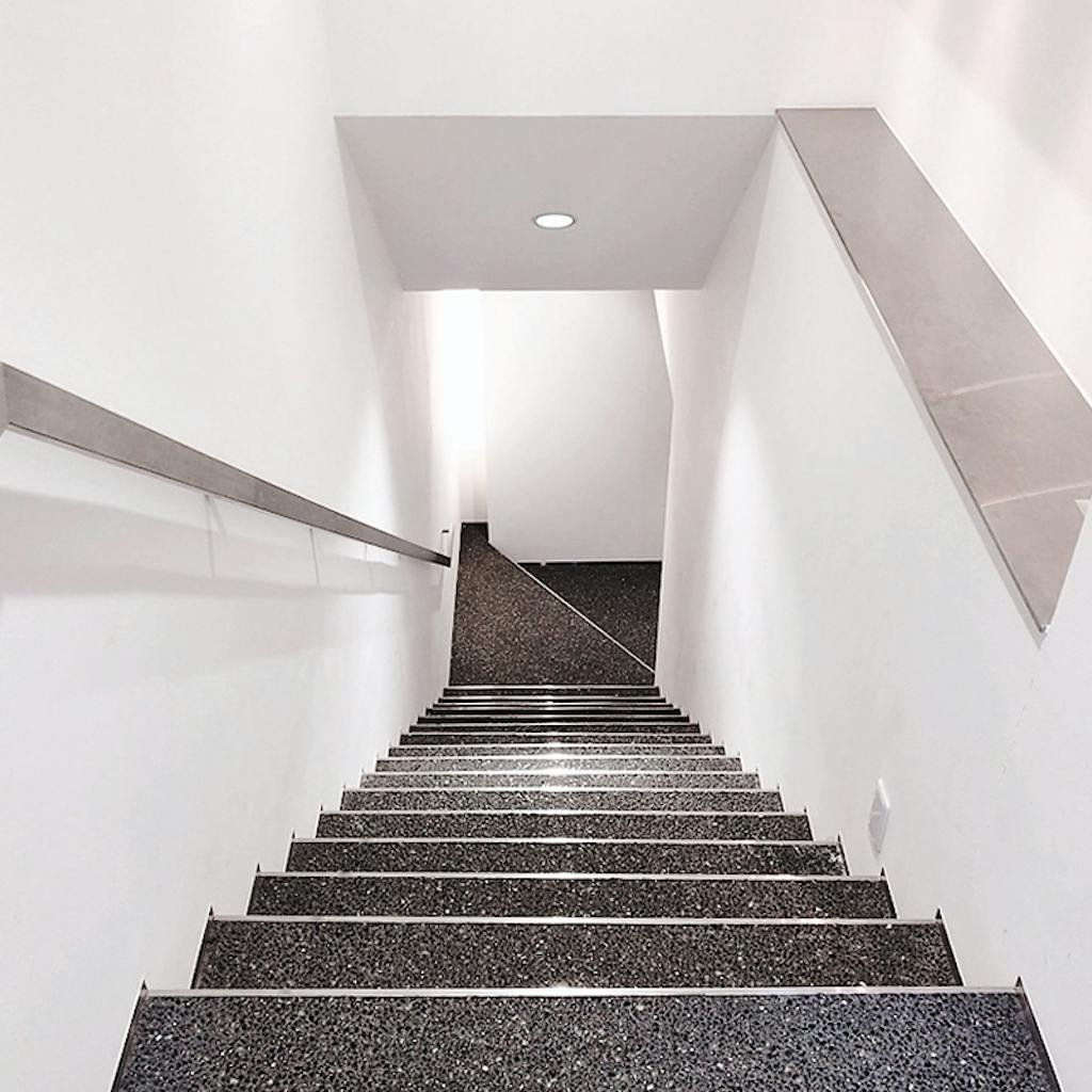 玄関を開けるとすぐ階段が!地下へと続く、階段を降りていきます。