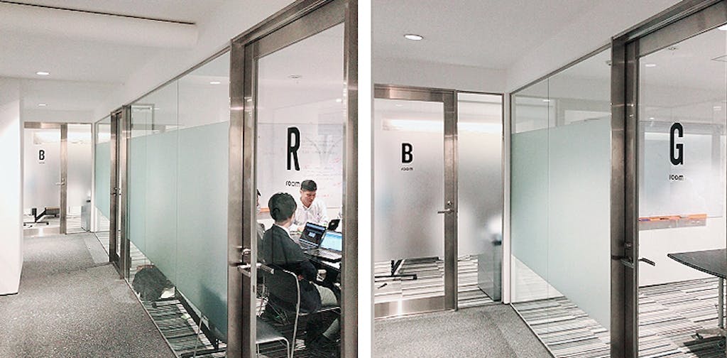 一番奥は、「room B」という名前で、全てあわせると…、ミーティングルームの名前が、「R G B」 になっています!