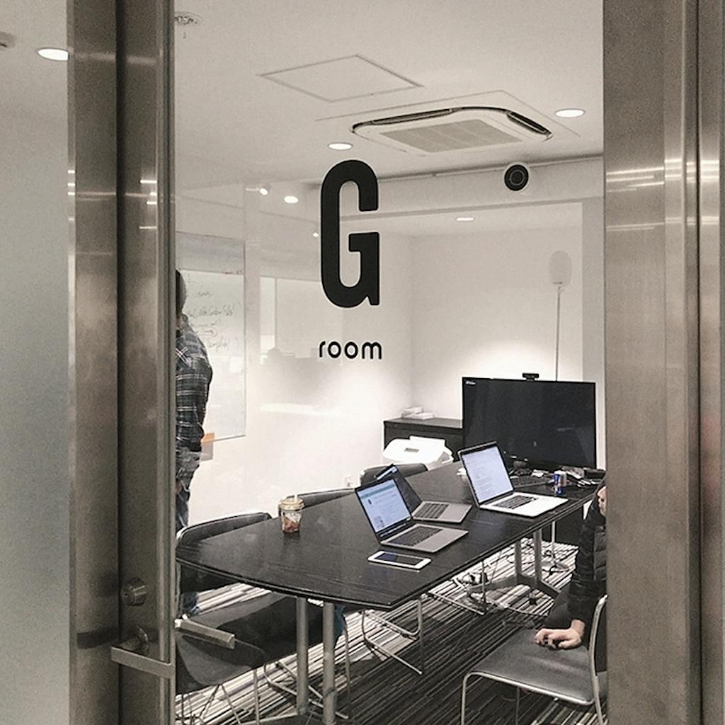 「room G」は、6〜8名ほど入ることができるミーティングルームです。チームなど少人数でのミーティングなどによく使われています。